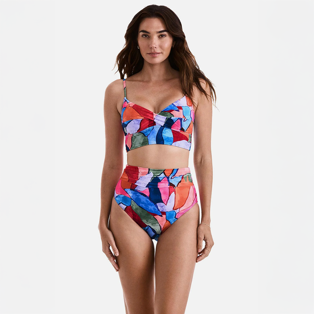 Jamie has a way of pulling everything together. A flattering wrap-front and clean lines create a midkini that feels confident, comfortable, and ready for whatever the day brings.