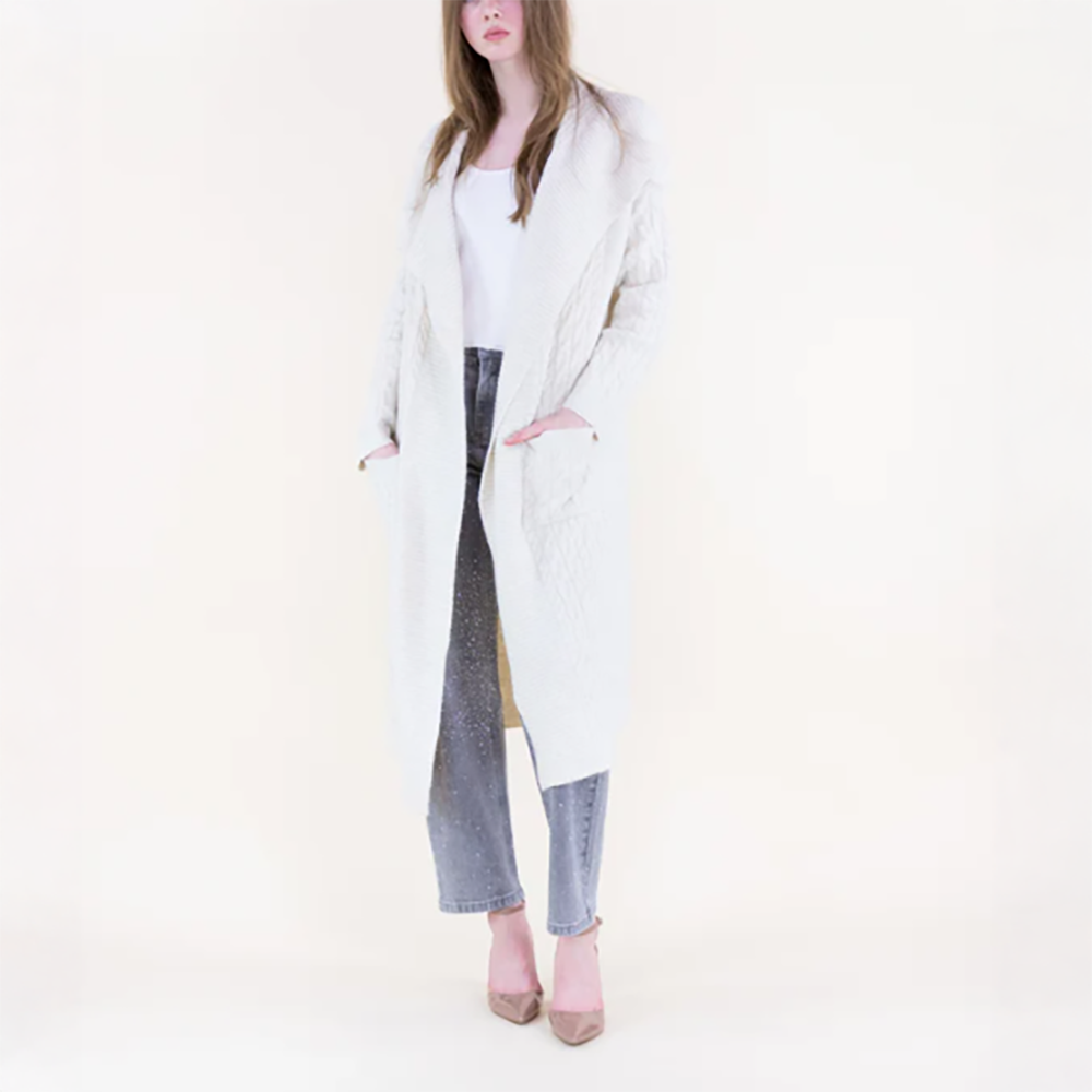 Shawl Collar Cable Stitch Lounge Coatigan Beige