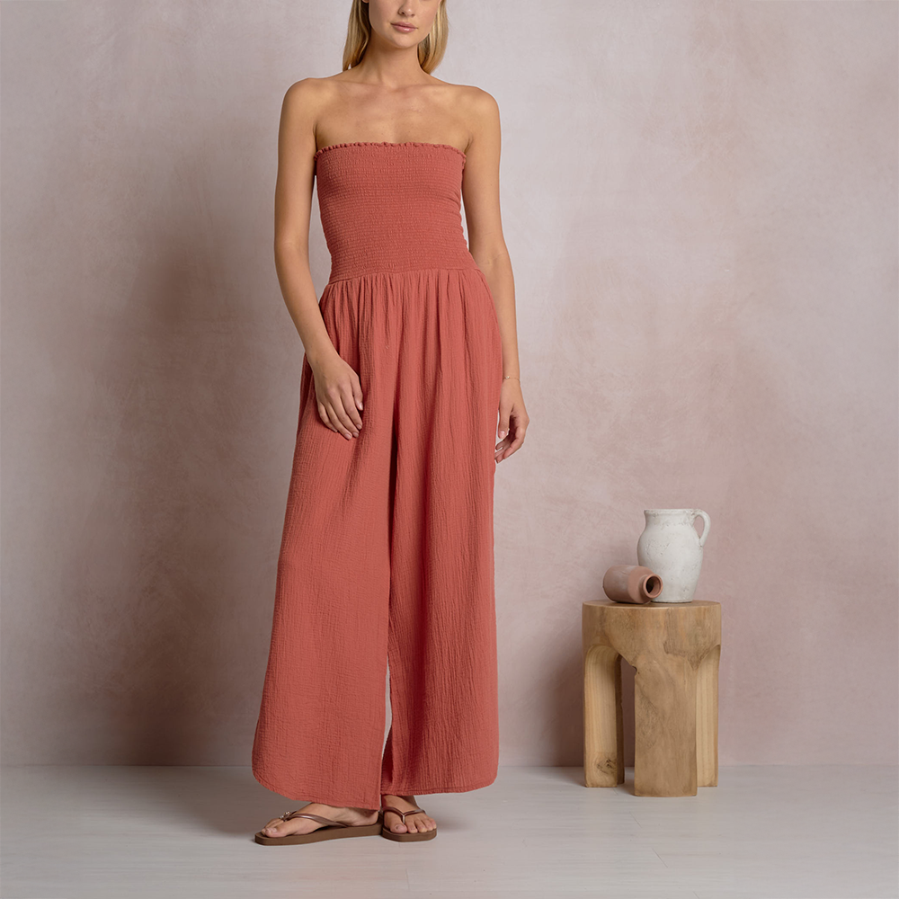 Effortless and airy, the Easy Split Hem Jumpsuit is the ultimate one-and-done ensemble for beach days, brunch, or sunset lounging. Crafted with a focus on movement and comfort, this piece blends a bohemian spirit with a modern silhouette.