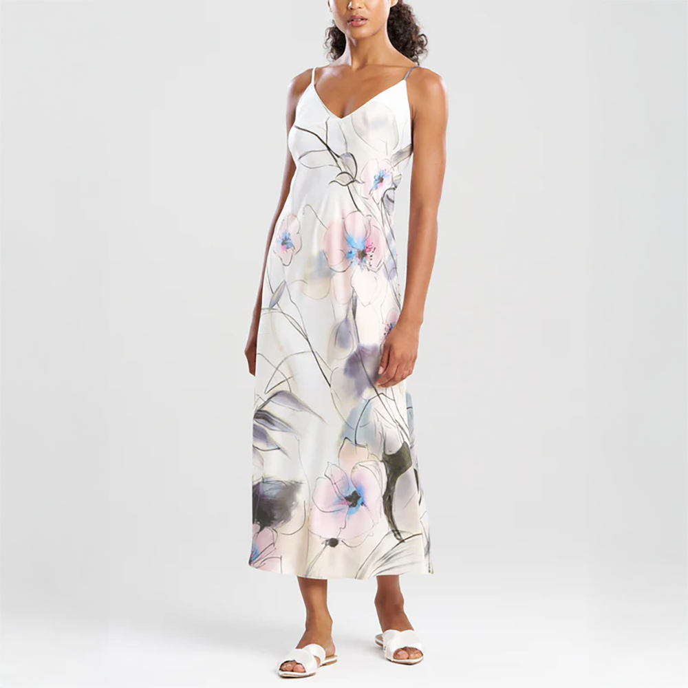 Hiyaku Printed Charmeuse Slip Dress Floral