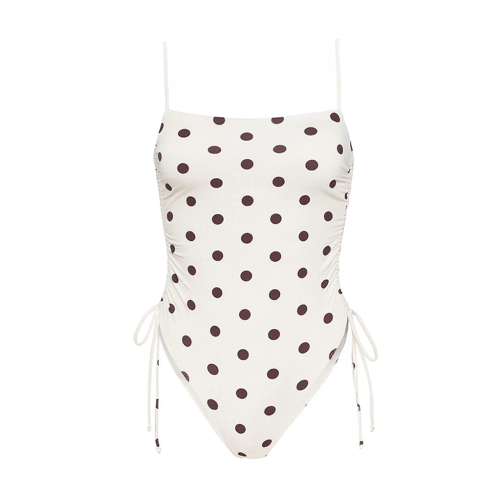 Ruched Square Neck One Piece Chocolate Dot