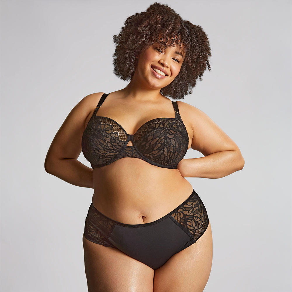 On the lookout for body-loving lingerie, with absolutely no compromise on style, whatever your size? We promise Sophia will tick all your boxes. Made from a show-stopping lace combining dramatic florals with geometric diamonds, you won’t fail to feel empowered by the first thing you put on in the morning. And did we mention she’s made from recycled materials? Consciously developed, and as comfortable as she is chic, Sophia has it all.